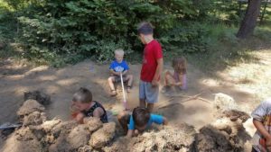 Camp days are filled with lots of outdoor exploration, from bug identification to pirate map reading, but also plenty of free play time to enjoy the hammocks, excavation station, tipi, and climbing tree. Weekly themes rotate throughout the summer and guide the crafts, stories, and outside activities of each week. Water play in the sprinkler and sandbox keeps little campers cool and is always great fun!